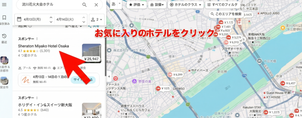 1. ブラウザでGoogleマップを開いて、場所を検索!