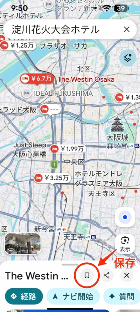 2. 下に出てくる詳細パネルの**「保存」**をタップ。